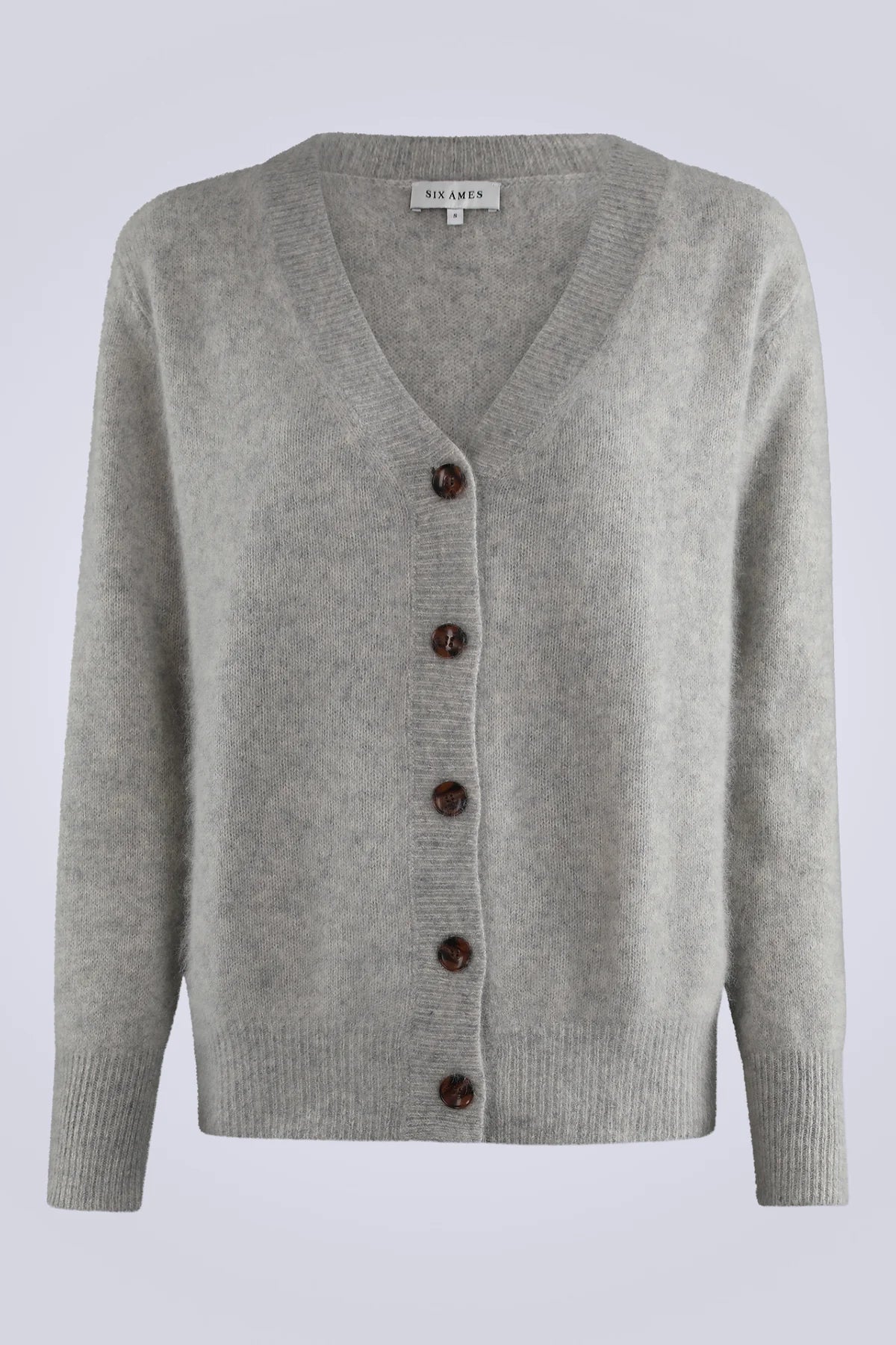 Alabama Cardigan er en luksuriøs strikkejakke i ultramyk vaskebjørn-ull, designet for både komfort og stil. Den har en klassisk V-hals, ribbestrikkede mansjetter og kant, samt en løs passform på kroppen med tettsittende ermer for en flatterende silhuett.