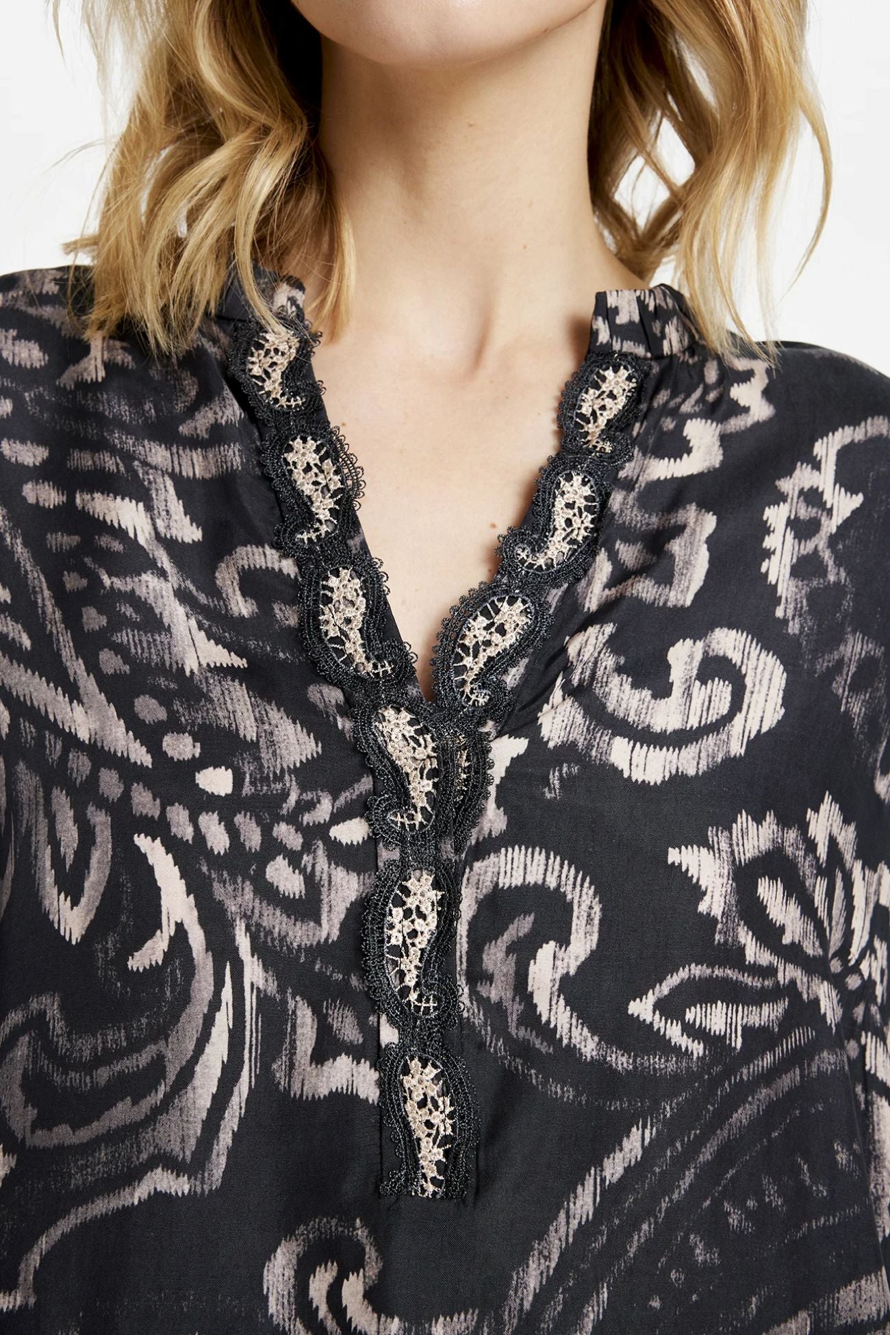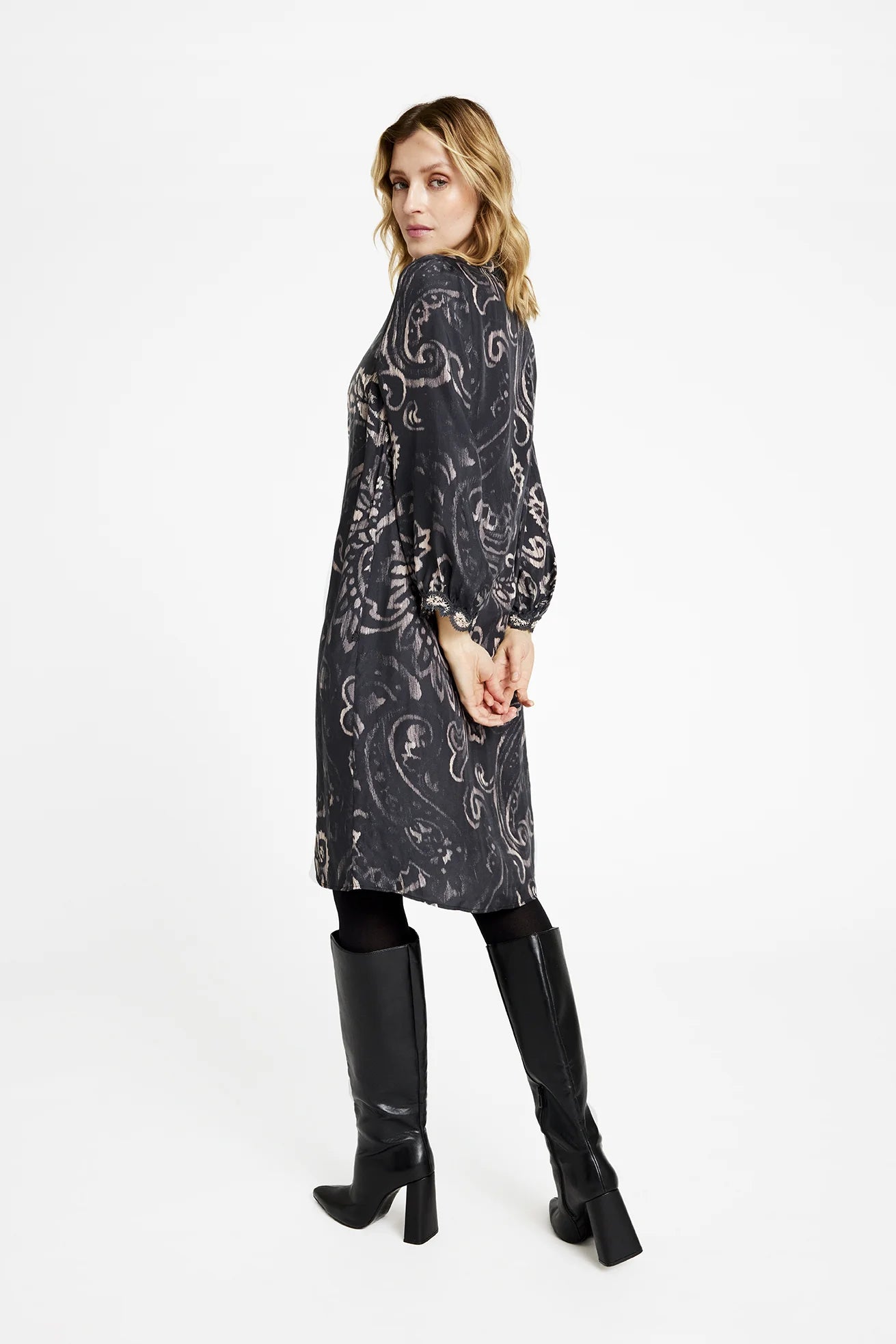 Denne kjolen fra Gustav imponerer med sitt vakre print og feminine ermer. Den løse passformen og lengden til knærne gjør den til et allsidig valg, både til hverdag og fest.