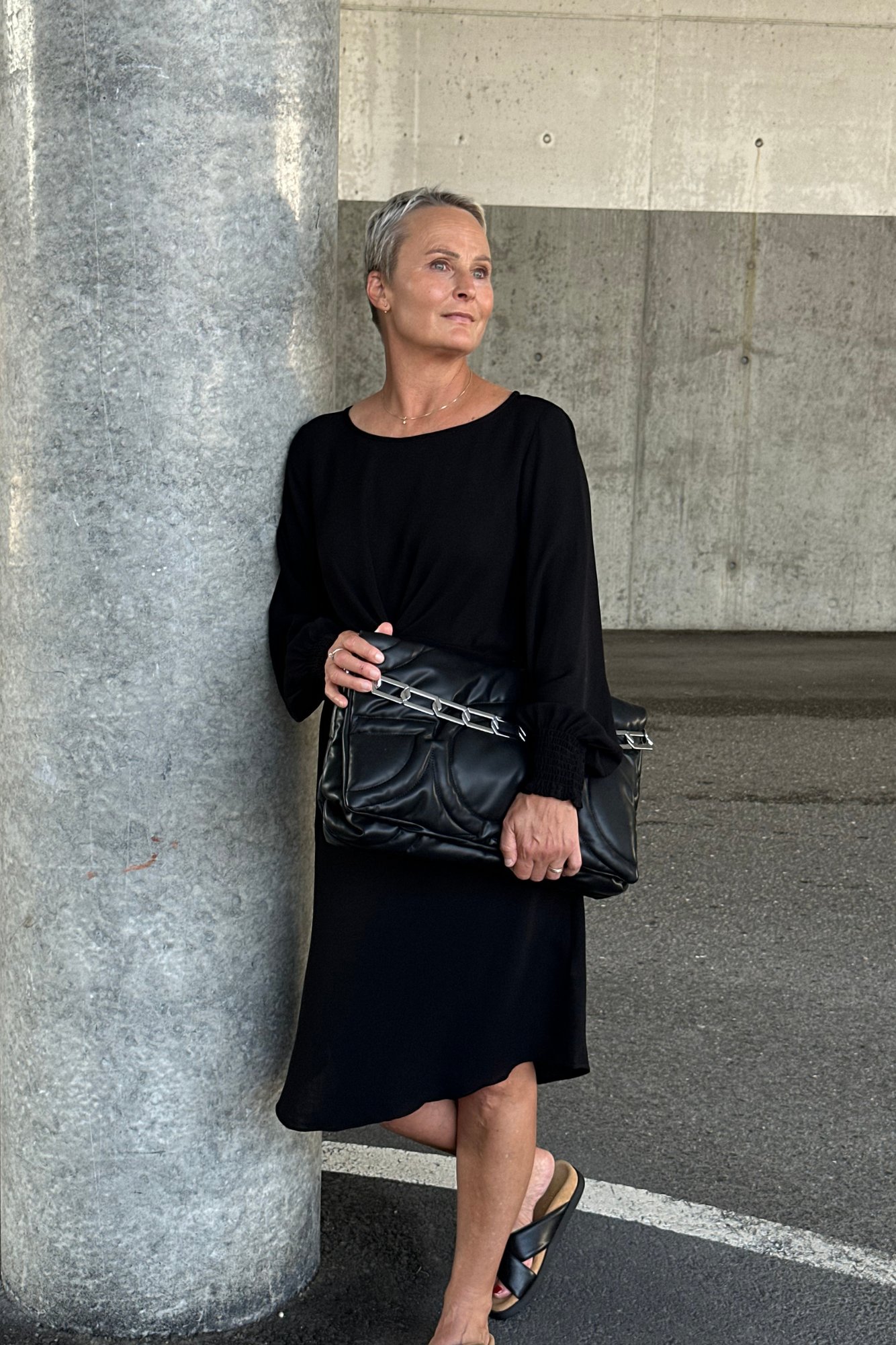 Kjolen har et rent og klassisk design, perfekt for lagdeling eller som et selvstendig plagg. Med sitt lette og luftige stoff gir Bitt-kjolen deg både stil og komfort.
