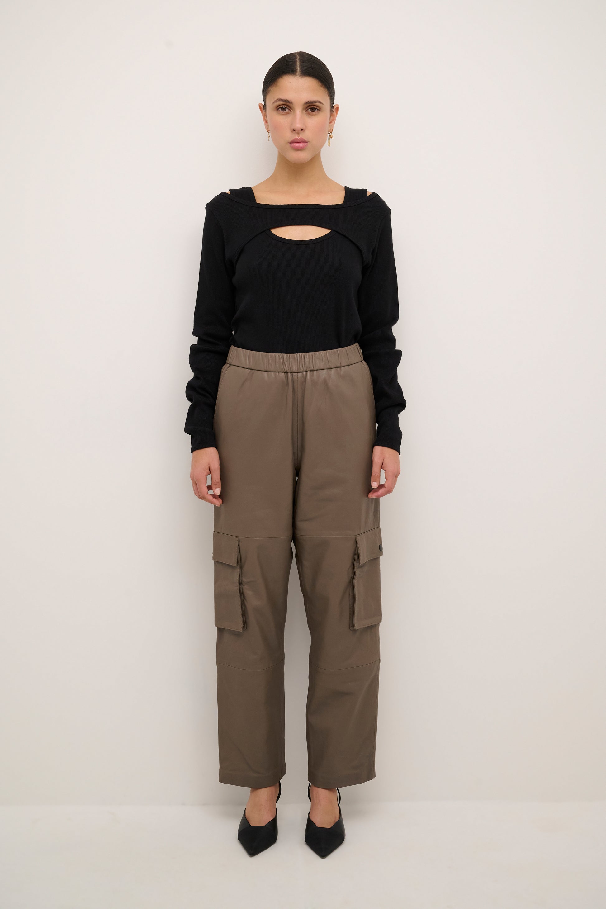 Modellen er 174 cm høy og bruker størrelse 36/S.
