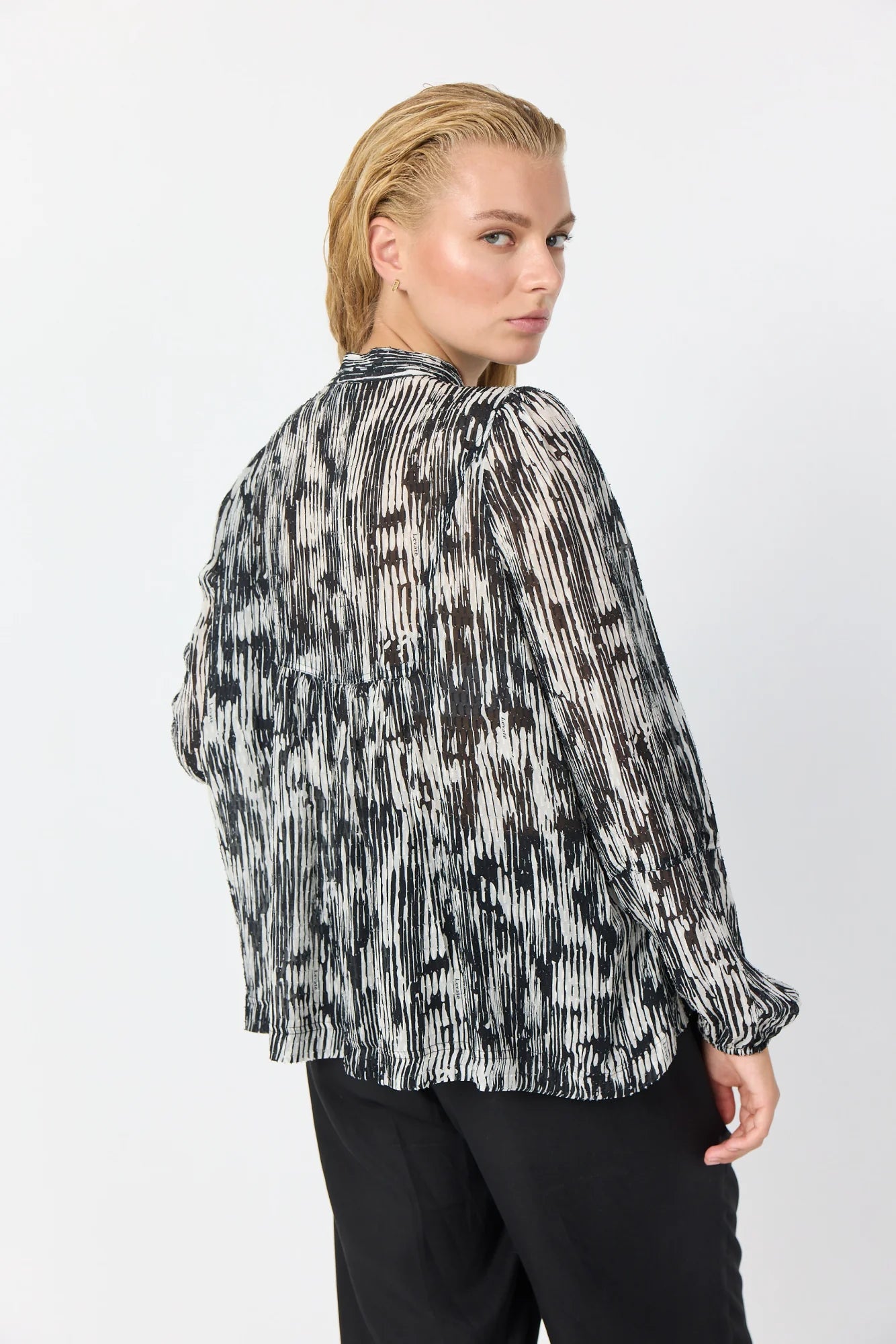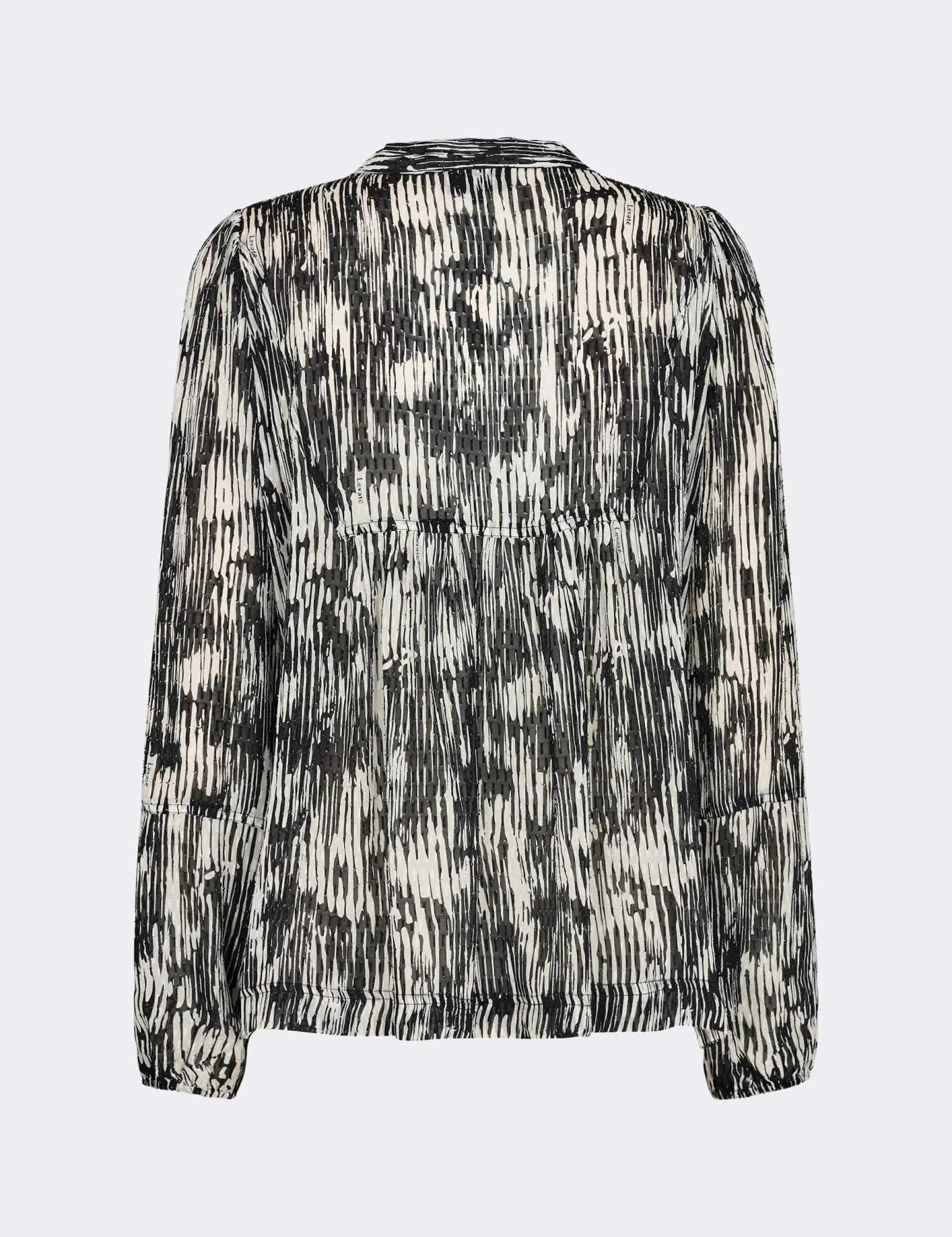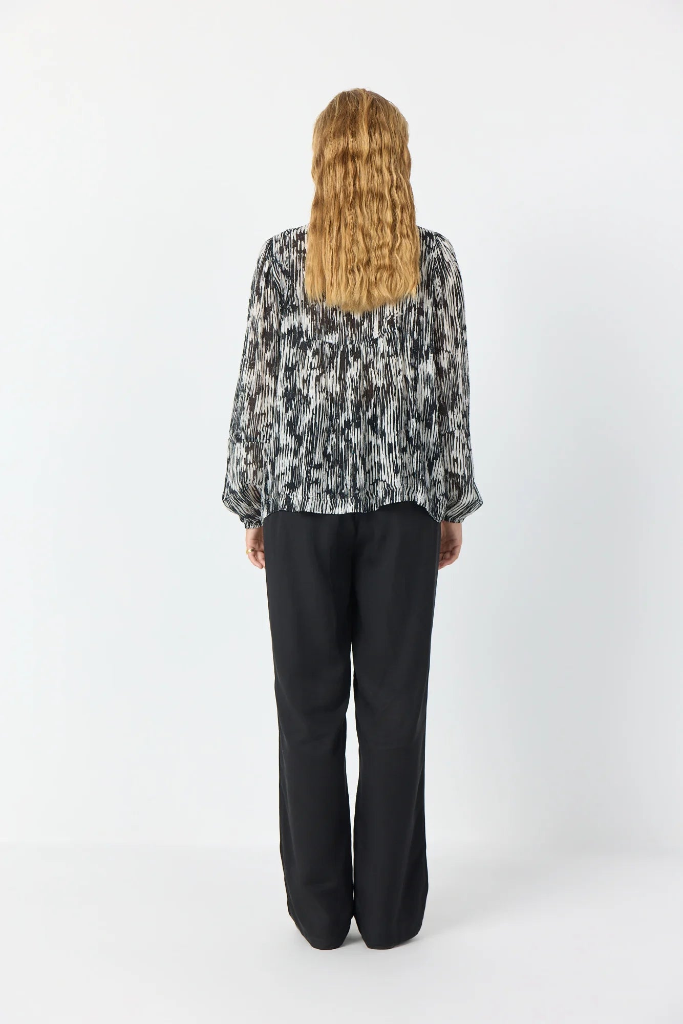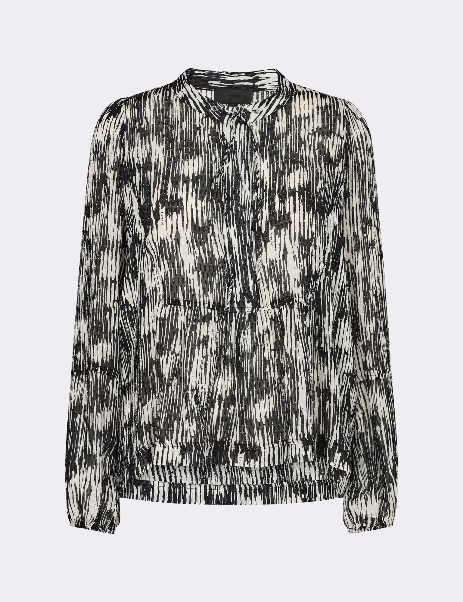 LR-DANA 1 er designet med et grafisk mønster i en herlig kvalitet av 100% bærekraftig viskose fra Levetè Room. Blusen har feminine detaljer, noe som gjør den perfekt for både hverdagsbruk og festlige anledninger, da du kan style den opp eller ned etter eget ønske.