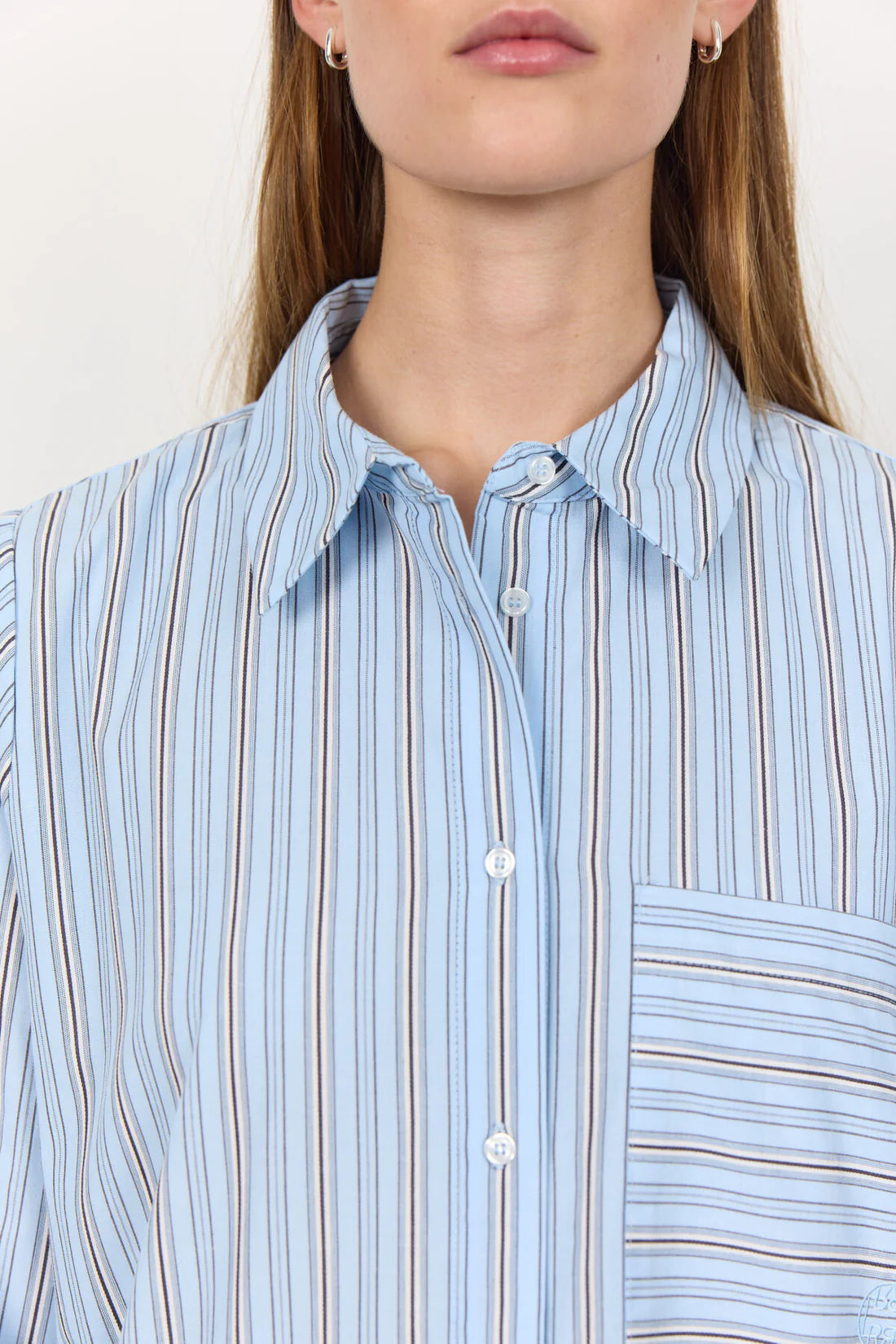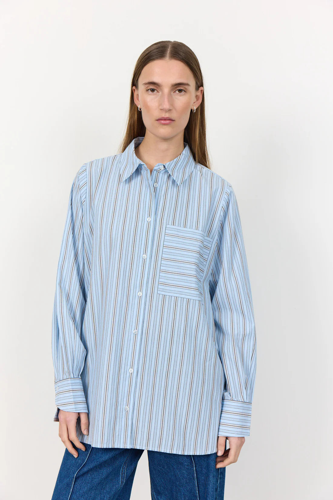 LR-KETTA 1 er en allsidig skjorte laget av deilig pustende 100 % økologisk bomull. Designet har en klassisk krave, knappestolpe i front og på sidene, med dekorativ lomme på brystet. Bruk skjorten sammen med dressbukser eller denim for å få en look som passer til forskjellige situasjoner.