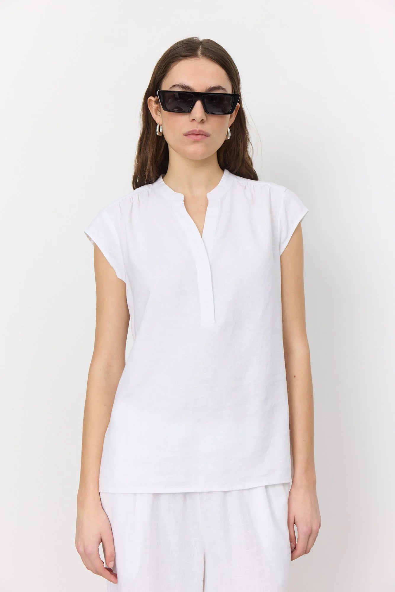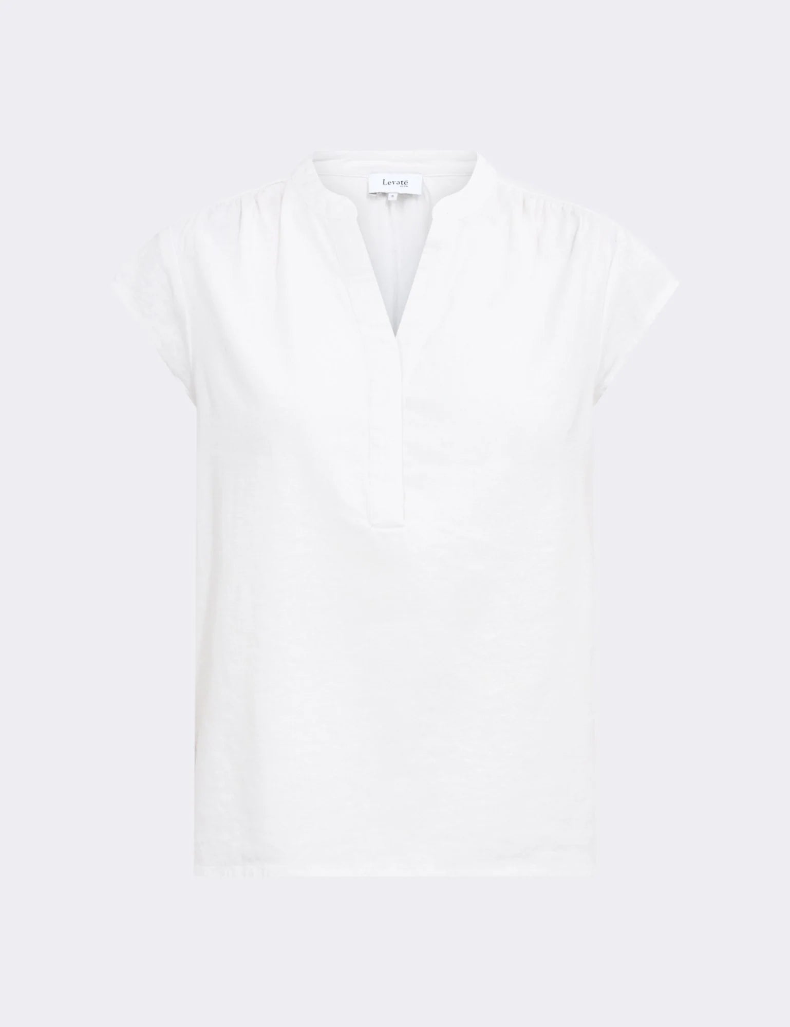 LR-Naja 19 har en elegant splitneck og er detaljert med subtile folder på skuldrene og i nakken, noe som gir toppen en ekstra touch av raffinement. Den løse passformen gjør den behagelig å ha på seg hele dagen, enten du er på stranden, i parken, eller ute på en sommermiddag. Kombiner den med et par shorts for en uanstrengt og chic hverdagslook.