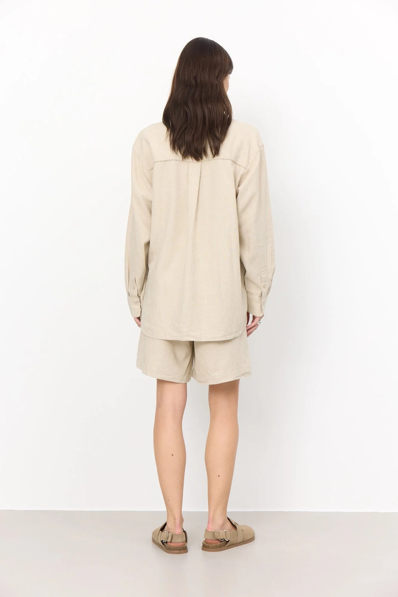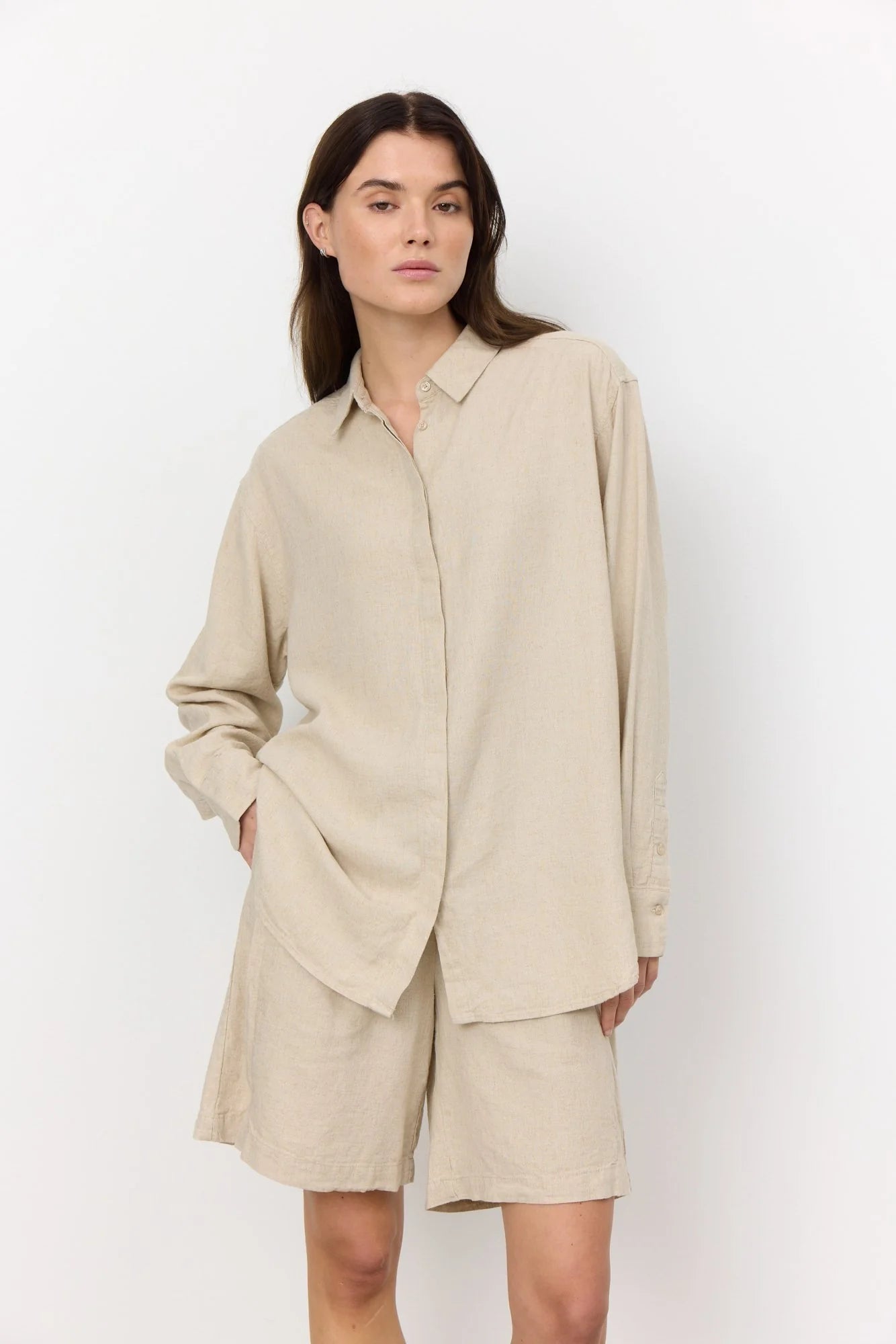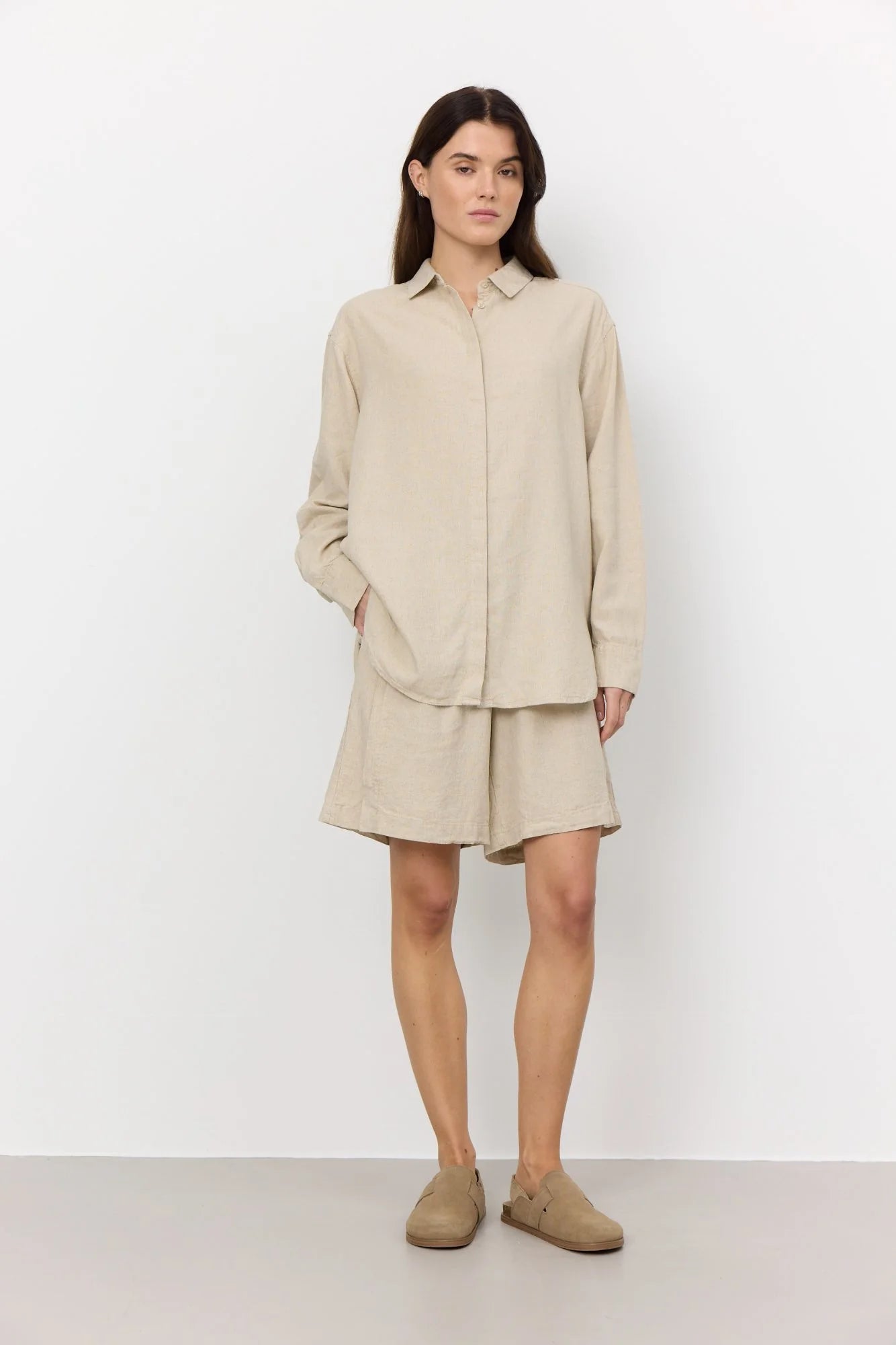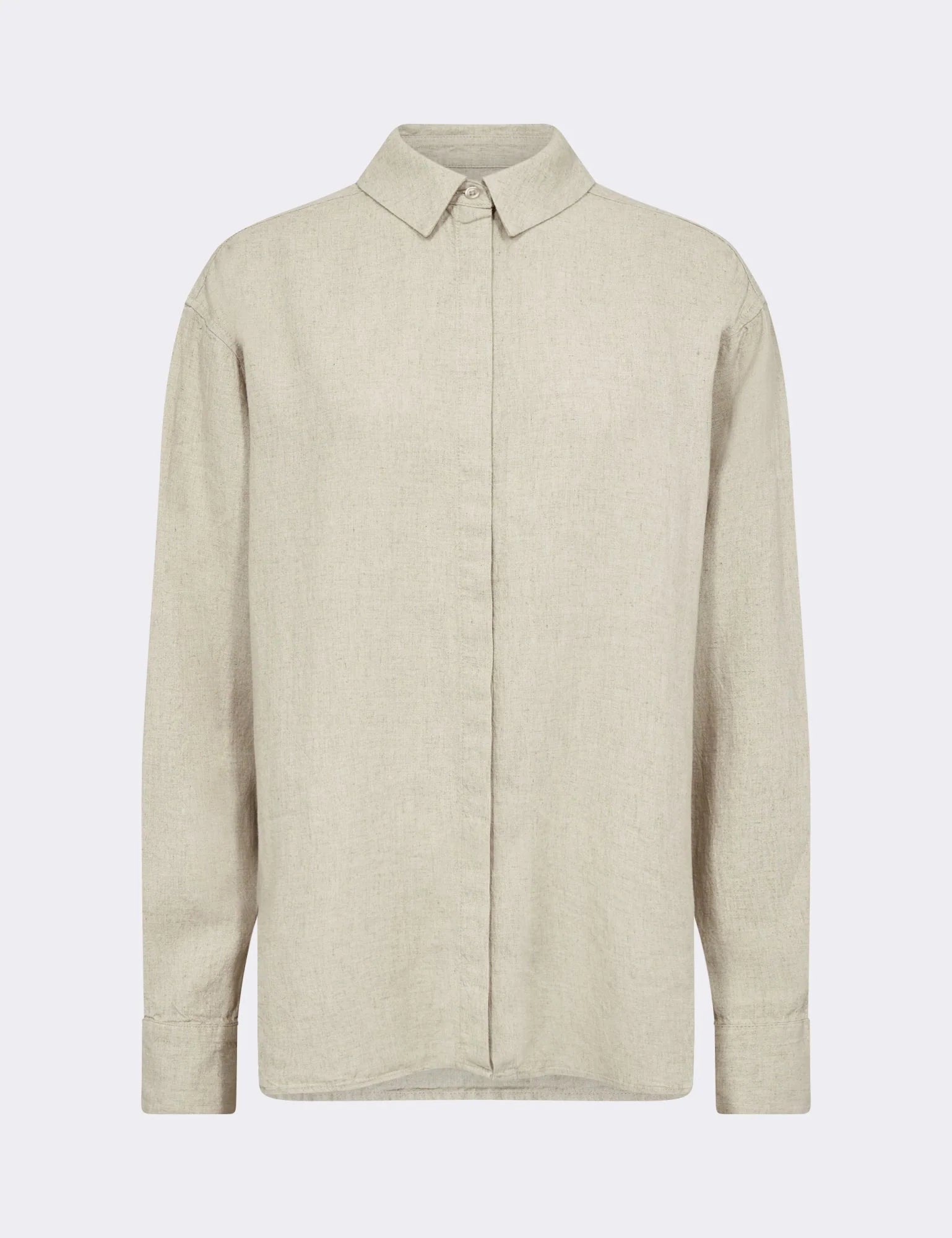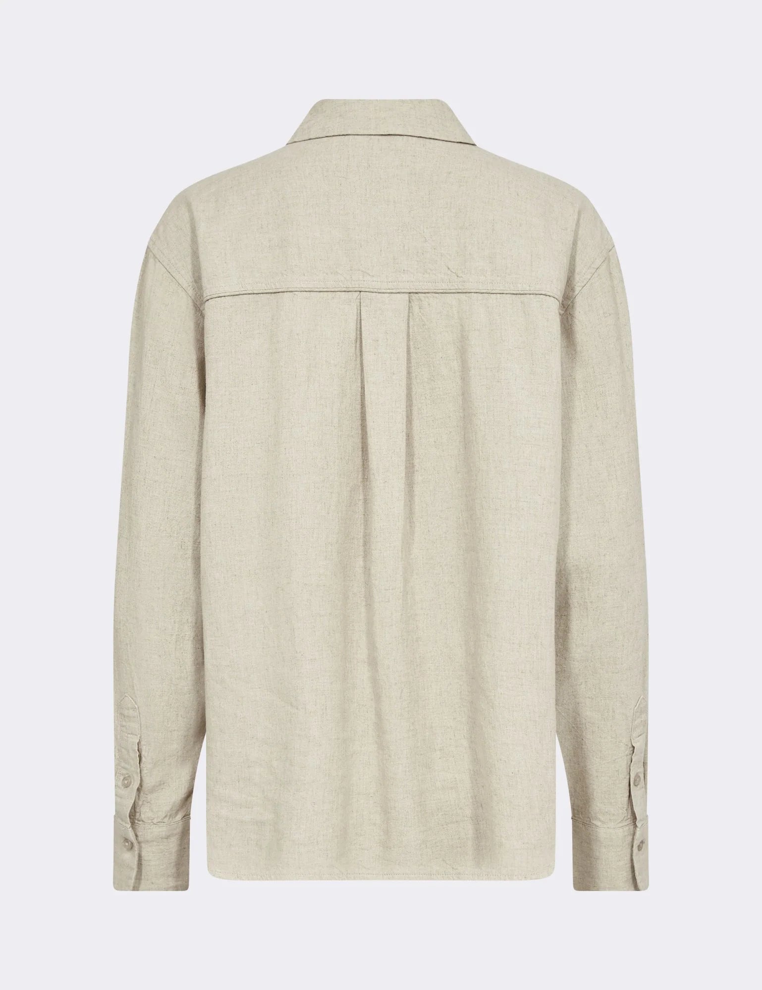 LR-Naja 20 har en klassisk krage og en knappestolpe, noe som gjør den ideell for både avslappede og formelle anledninger. De diskré foldene på baksiden gir en voluminøs touch, som tilfører skjorten en unik stil og bevegelse. Kombiner den med et par jeans for en uanstrengt og chic hverdagslook, eller med en elegant bukse for en mer formell anledning.
