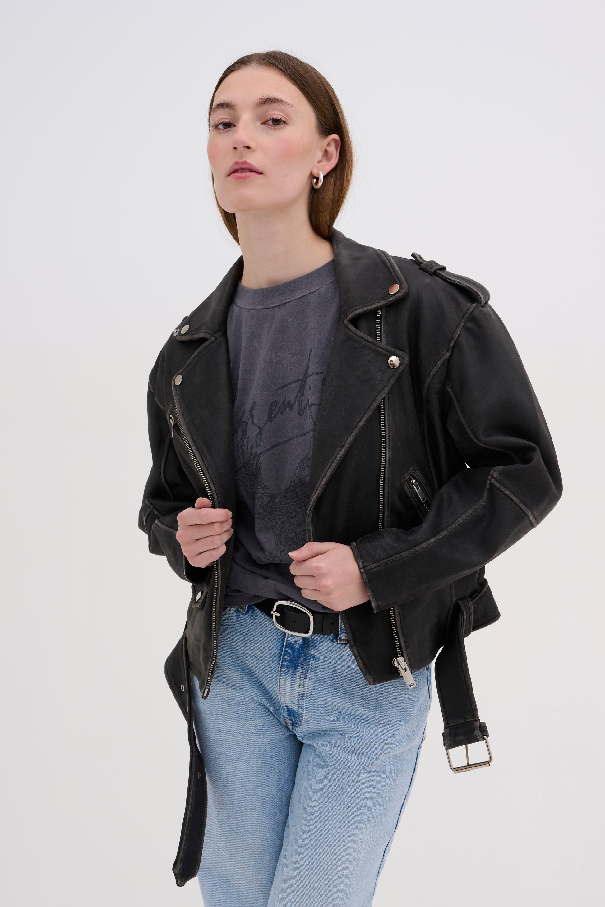 Utforsk luksusen av MWGILO SKINNJAKKE fra My Essential Wardrobe - et ikonisk plagg som utstråler raffinement og stil.