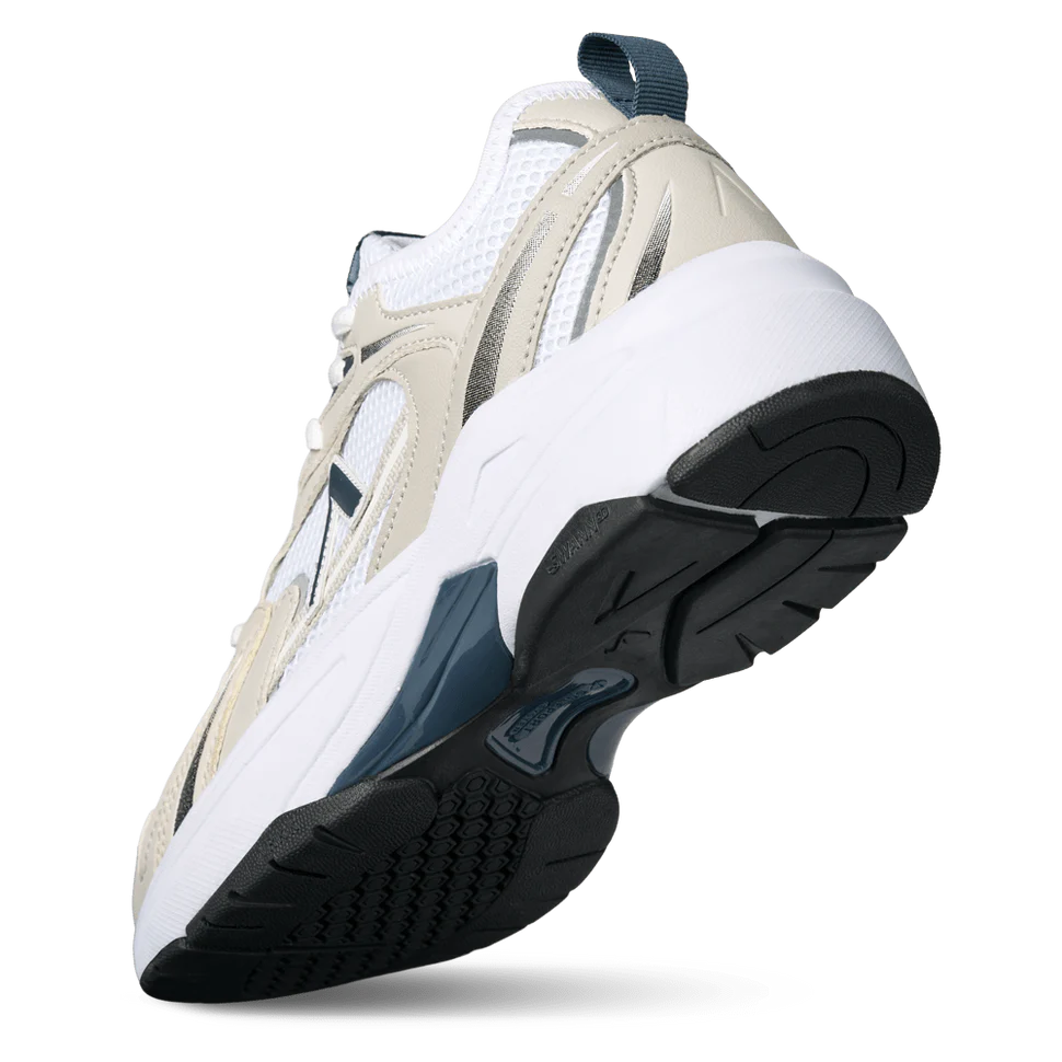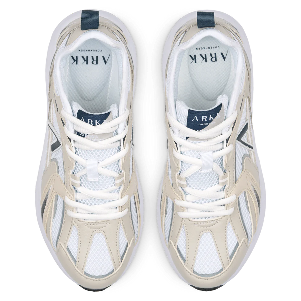Oserra Mesh S-SP er en detaljert silhuett med en blanding av luftig mesh og flerlags vegansk skinn som kombinerer komfort, letthet og pusteevne. Den er introdusert på den ultrakomfortable Swann S-SP såleenheten med EVA-mellomsålepute og Arkk sitt eget Soleport System for forbedret støtte og stabilitet ved gange.