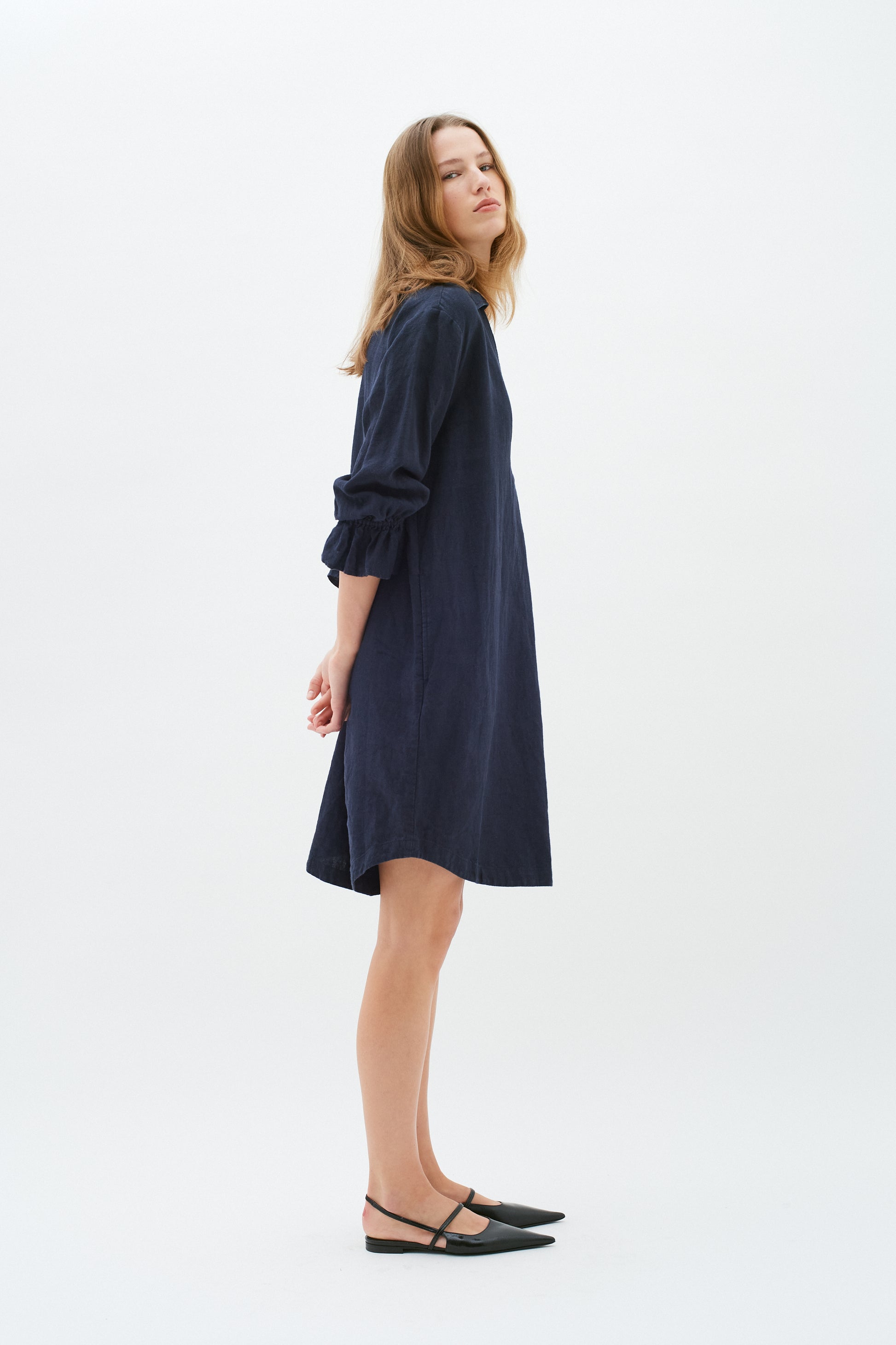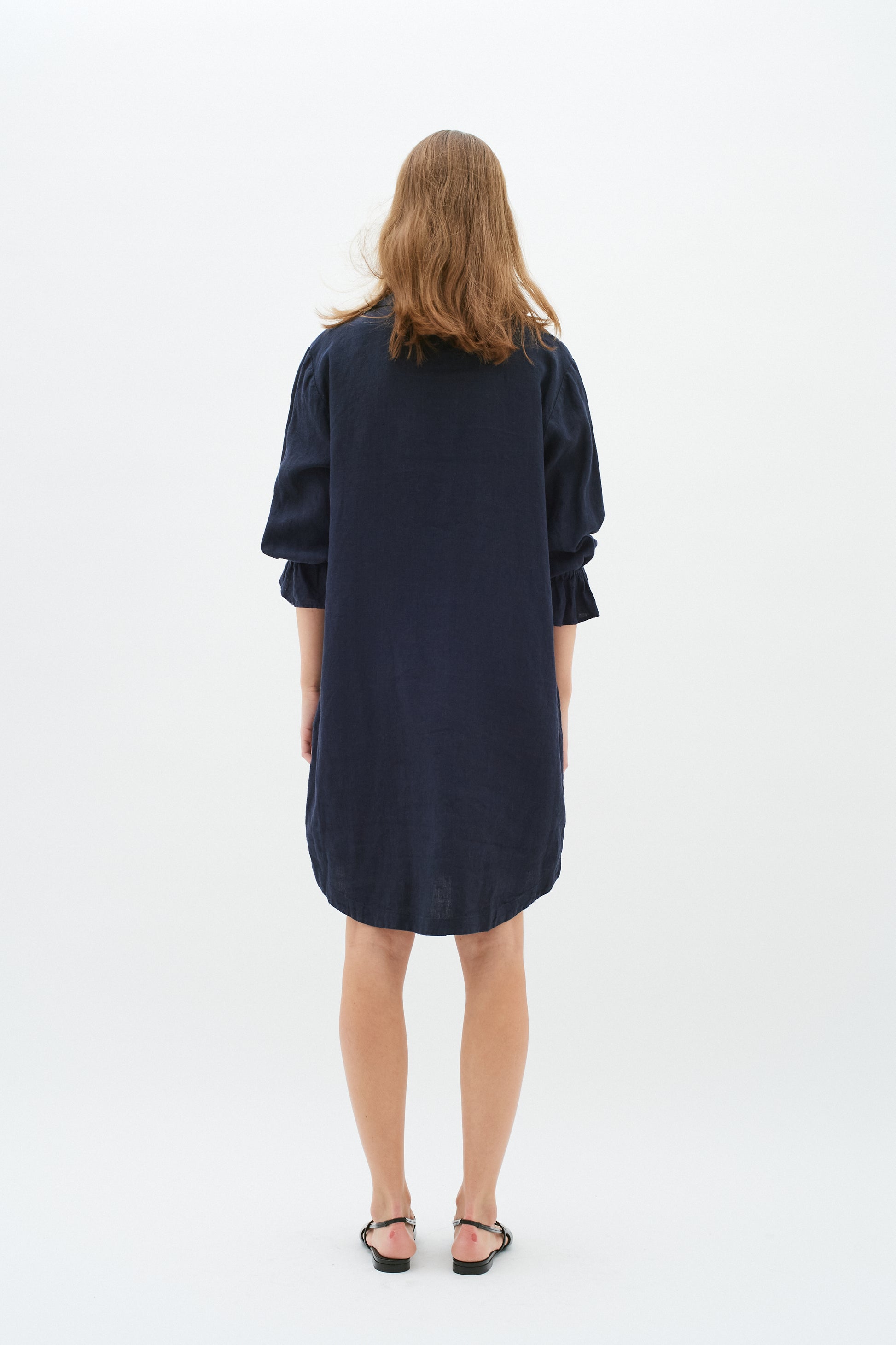 Nyt en avslappet og elegant stil med InWear PEGIW linkjole i fargen Marine Blue. Denne knelange kjolen med loose fit form er det perfekte valget for en uanstrengt chic look, enten du skal på jobb, en lunsj med venner eller en spasertur langs stranden.