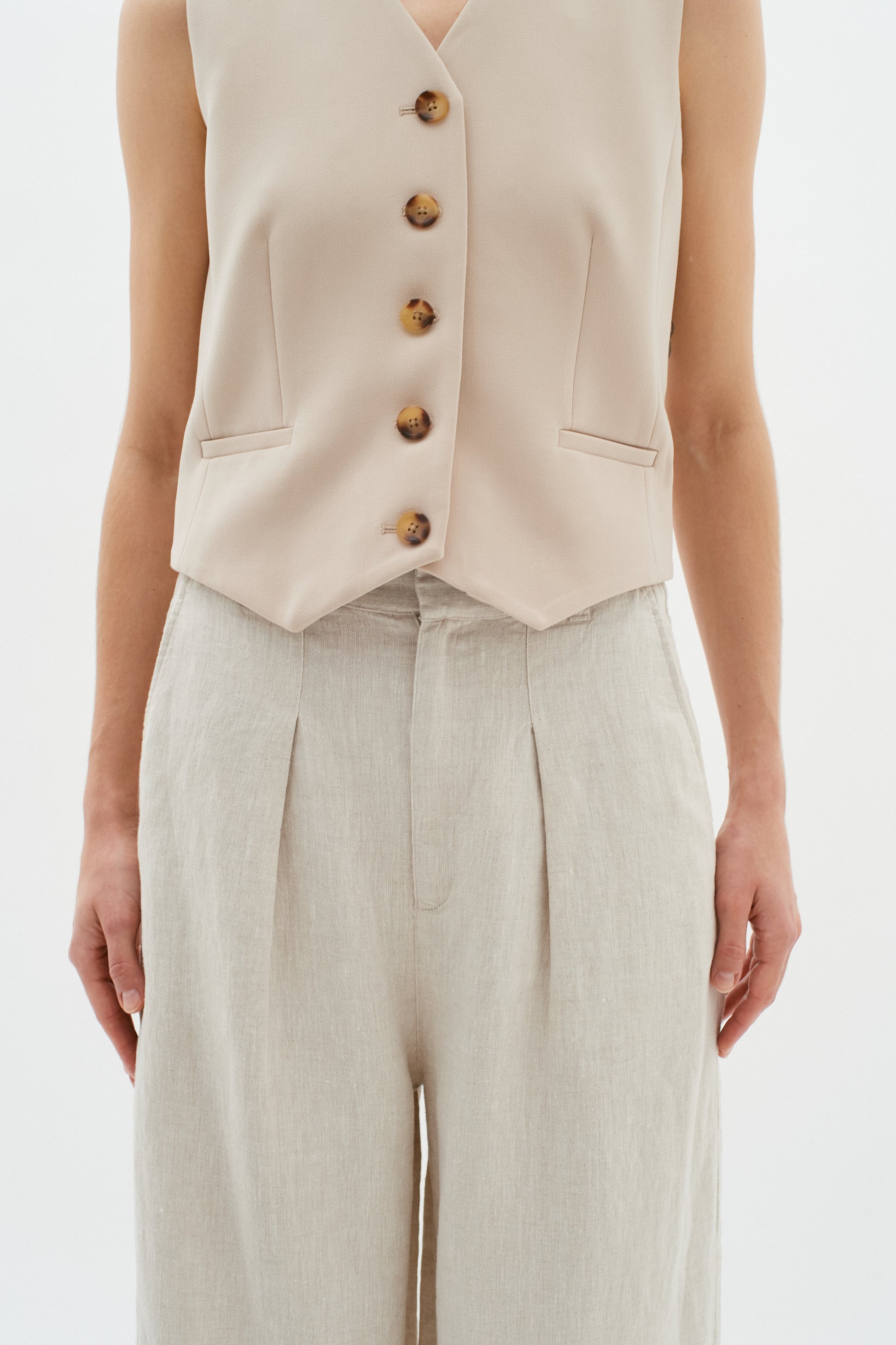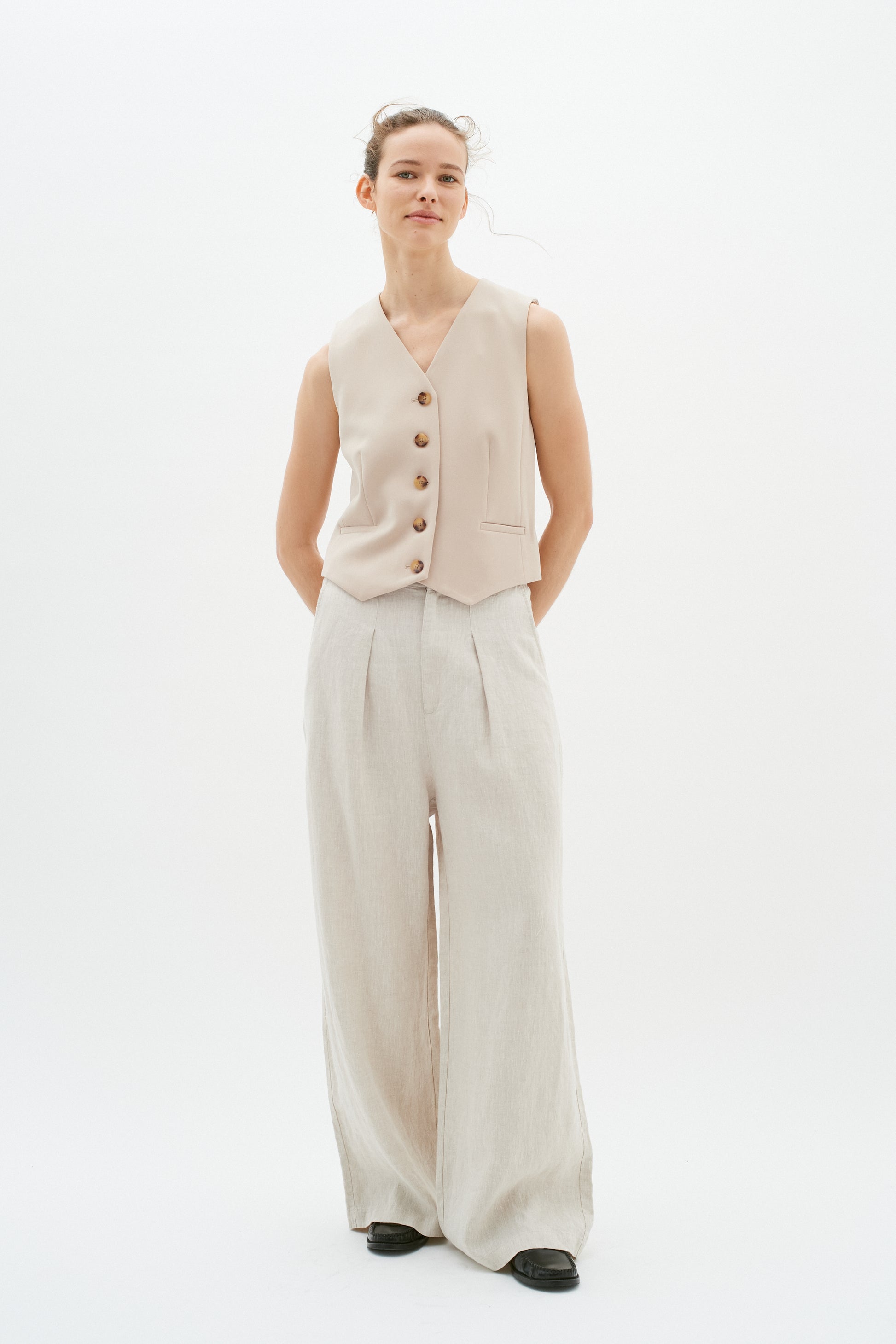 - 100% linblanding: Laget av 100% linblanding, tilbyr disse buksene en lett og luftig følelse som passer perfekt for varme dager.