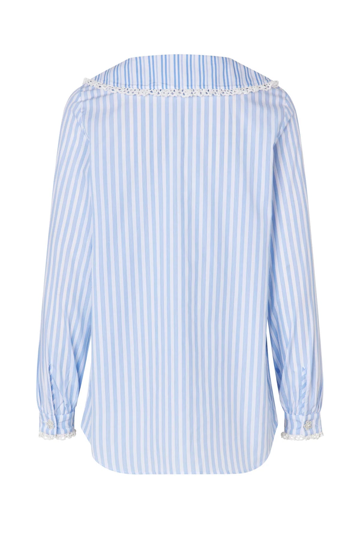 Sarahcras Shirt er en stilren og feminin skjorte med klassiske striper og elegante detaljer. Den flatterende V-halsen gir et sofistikert preg, mens de blomsterformede knappene langs knappestolpen tilfører et unikt og delikat uttrykk. Denne skjorten er perfekt både til hverdags og mer formelle anledninger.