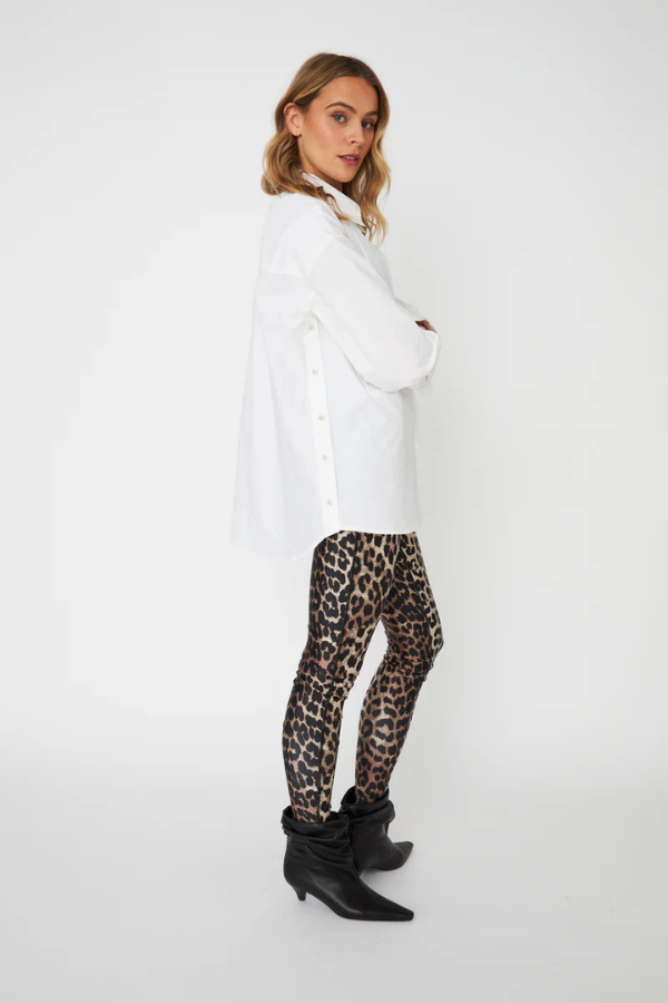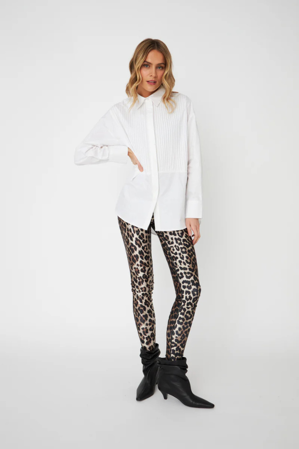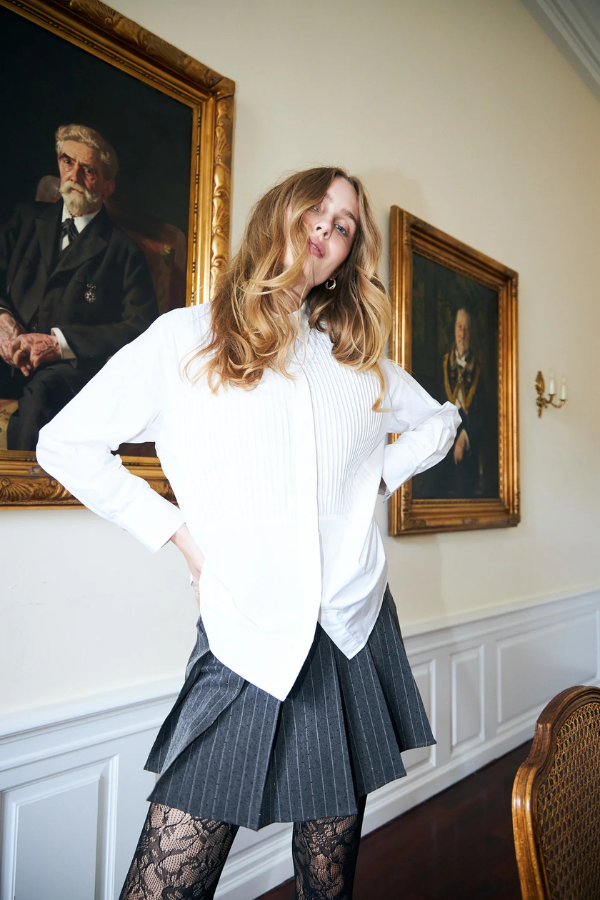 Saturncras Shirt er en tidløs hvit skjorte med det lille ekstra. De fine pintuck-foldene i front gir et elegant uttrykk, mens diskré rhinsteinknapper langs siden og på mansjettene tilfører en subtil glød. Dette er skjorten du enkelt kan style til både jobb, hverdager og hyggelige kvelder ute – like fin til dressbukser som til jeans.