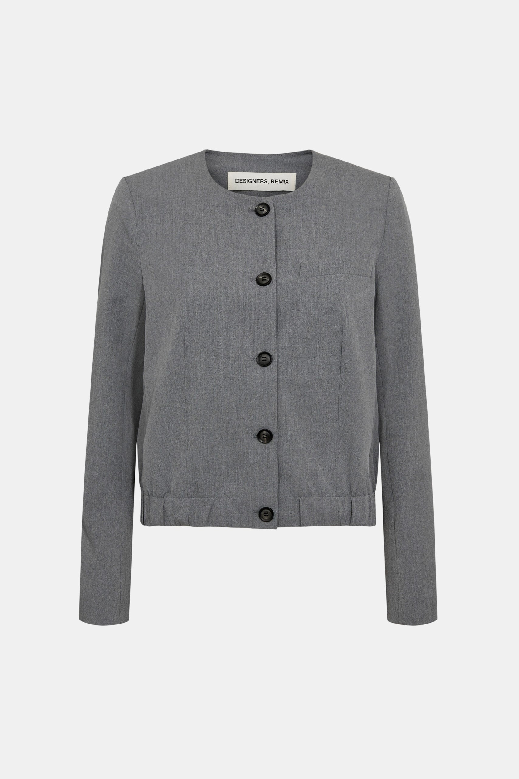 Oppdater høstgarderoben din med Scott Bomber Blazer fra Designers Remix, det ultimate høstplagget. Denne cropped dressblazeren er designet med en elastisk kant nederst, som gir et moderne preg på en klassisk silhuett. Den lysegrå melerte fargen gjør blazeren enkel å kombinere med andre plagg, og skaper en sofistikert, men avslappet stil. Style den gjerne med vårt matchende Scott Mini-skjørt for en fullkommen look.