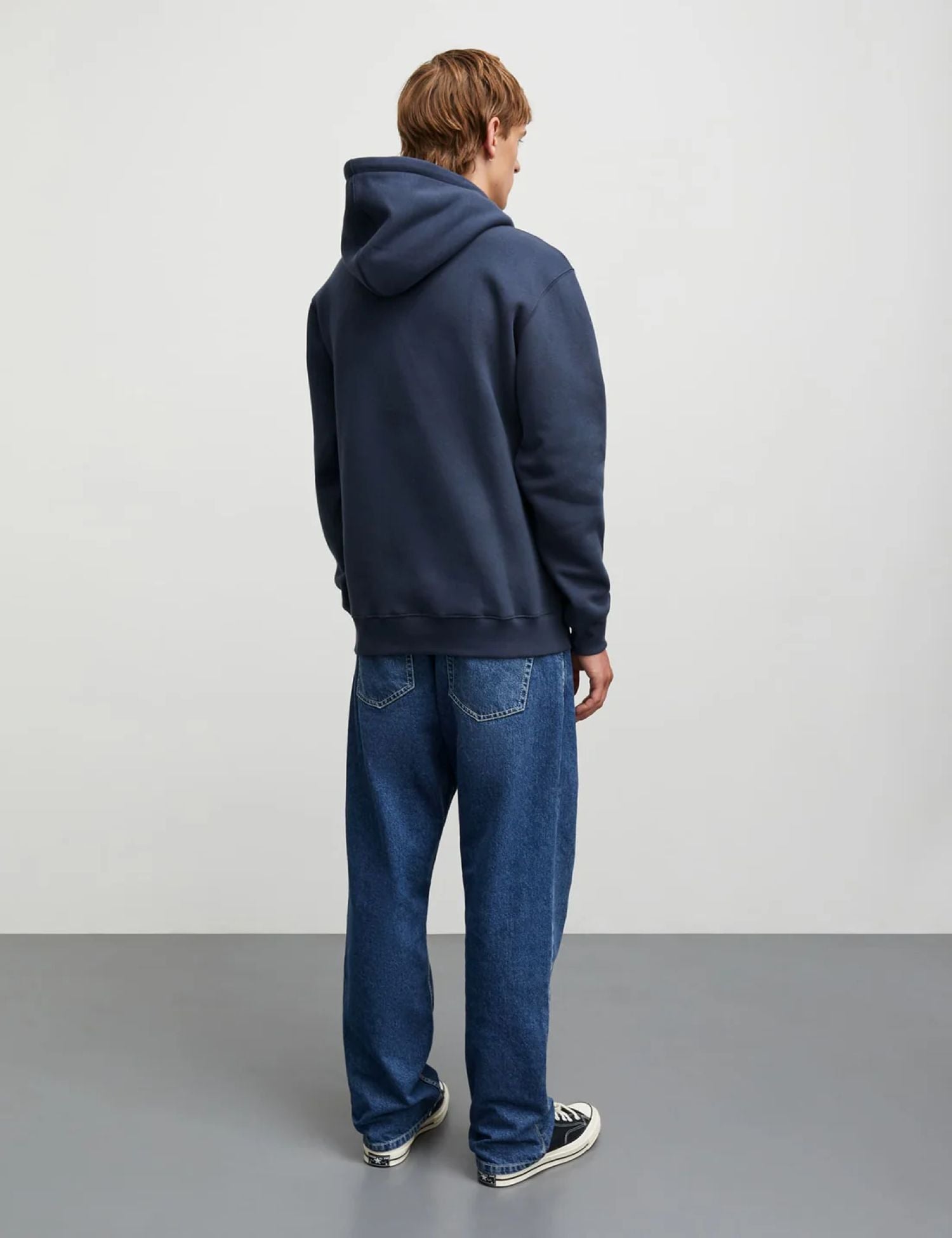 Oppdag den perfekte kombinasjonen av stil og komfort med Standard Hoodie Logo Sweat fra Mads Nørgaard i fargen Parisian Night. Med ribbestrikkede kanter, en romslig hette og en dyp kengurulomme foran, er dette et plagg som gir et moderne og tidløst utseende. Hettegenseren er laget av en slitesterk blanding av 65% bomull og 35% polyester, noe som gir en myk og behagelig følelse mot huden takket være den børstede innsiden.