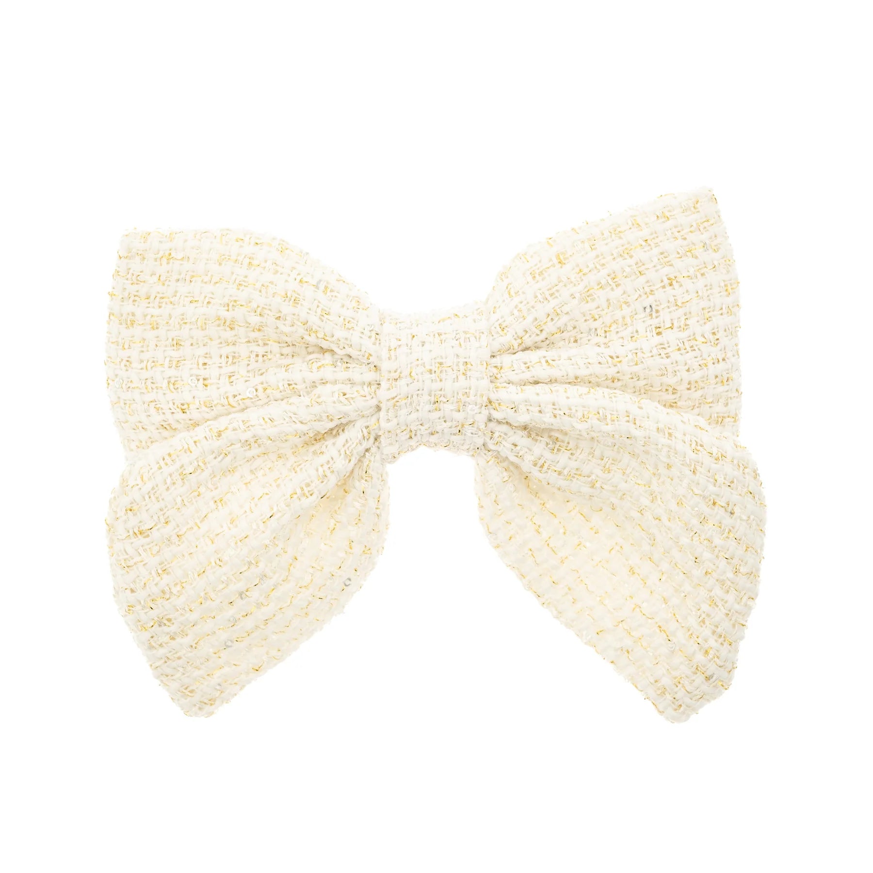 TWEED BOW HAIR CLIP OFF WHITE W/GOLD