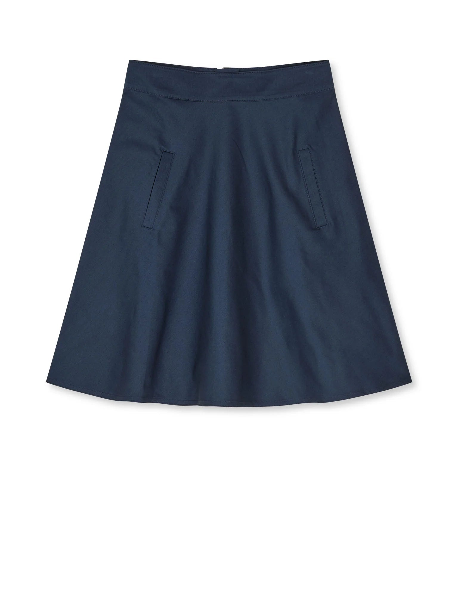 Twilla Stelly Skirt er et tidløst og sofistikert skjørt som når rett til kneet og har en høy midje for en flatterende silhuett. Den A-formede passformen gir bevegelse, mens de skrå lommene og den usynlige glidelåsen bak tilfører en praktisk og elegant finish. Dette skjørtet er perfekt for både formelle og uformelle anledninger.