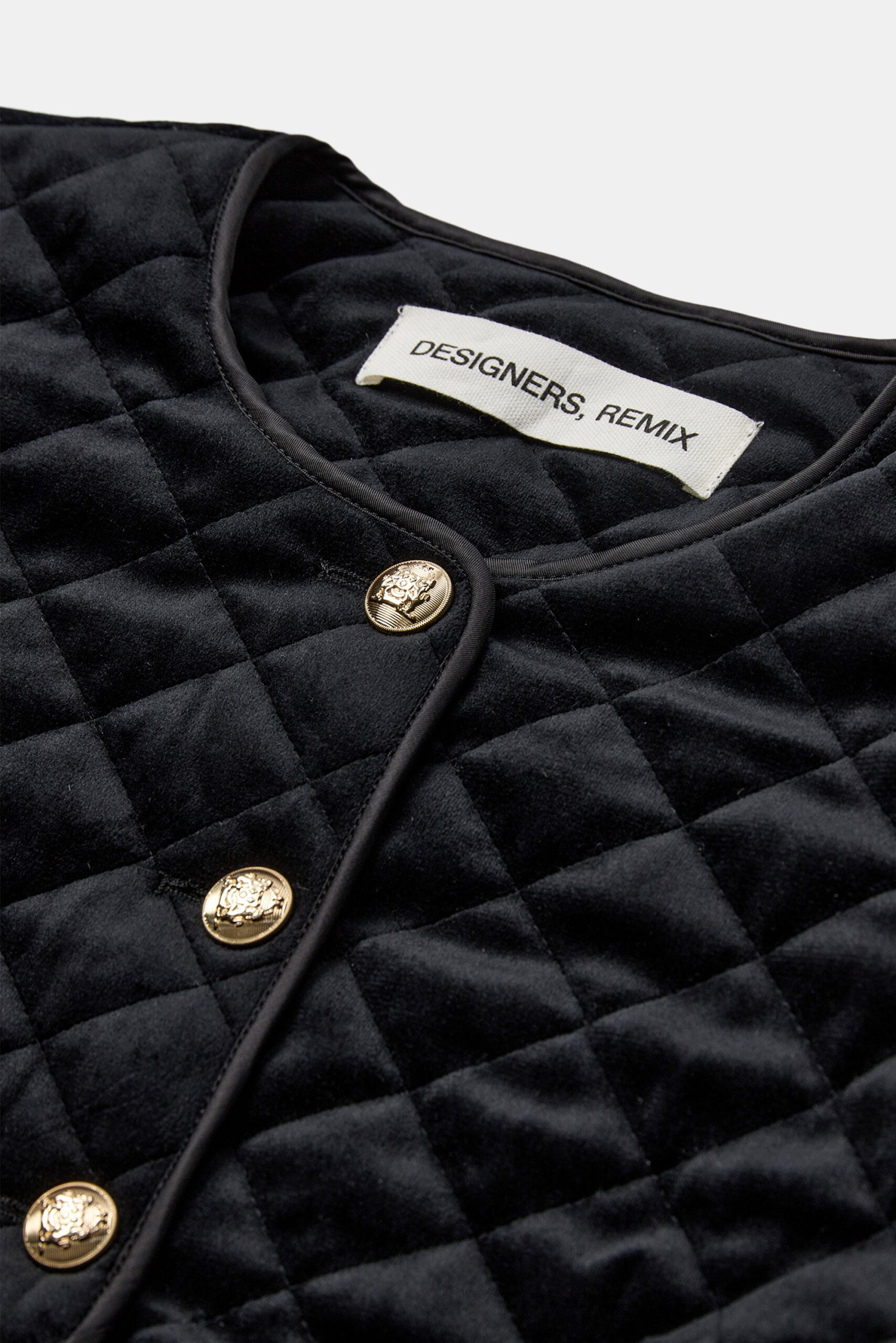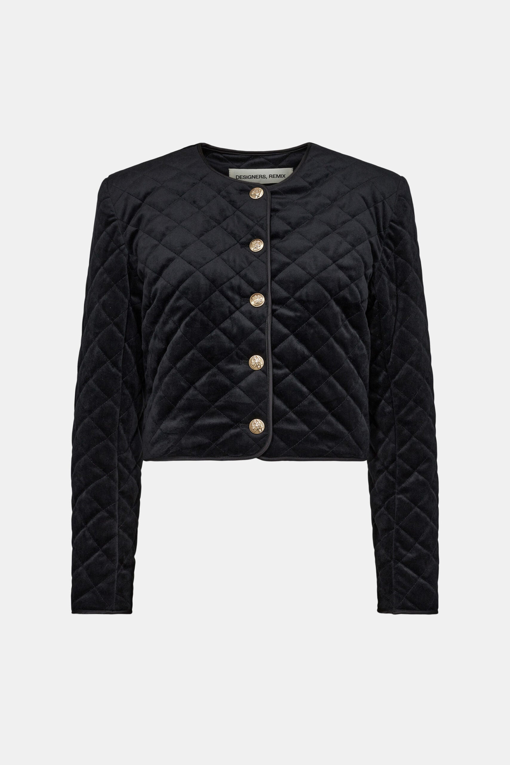 Victoria Jacket fra Designers Remix er en quiltet fløyelsjakke med gullknapper. Denne jakken er både luksuriøs og iøynefallende, og vil være et perfekt tilskudd til høstgarderoben din!